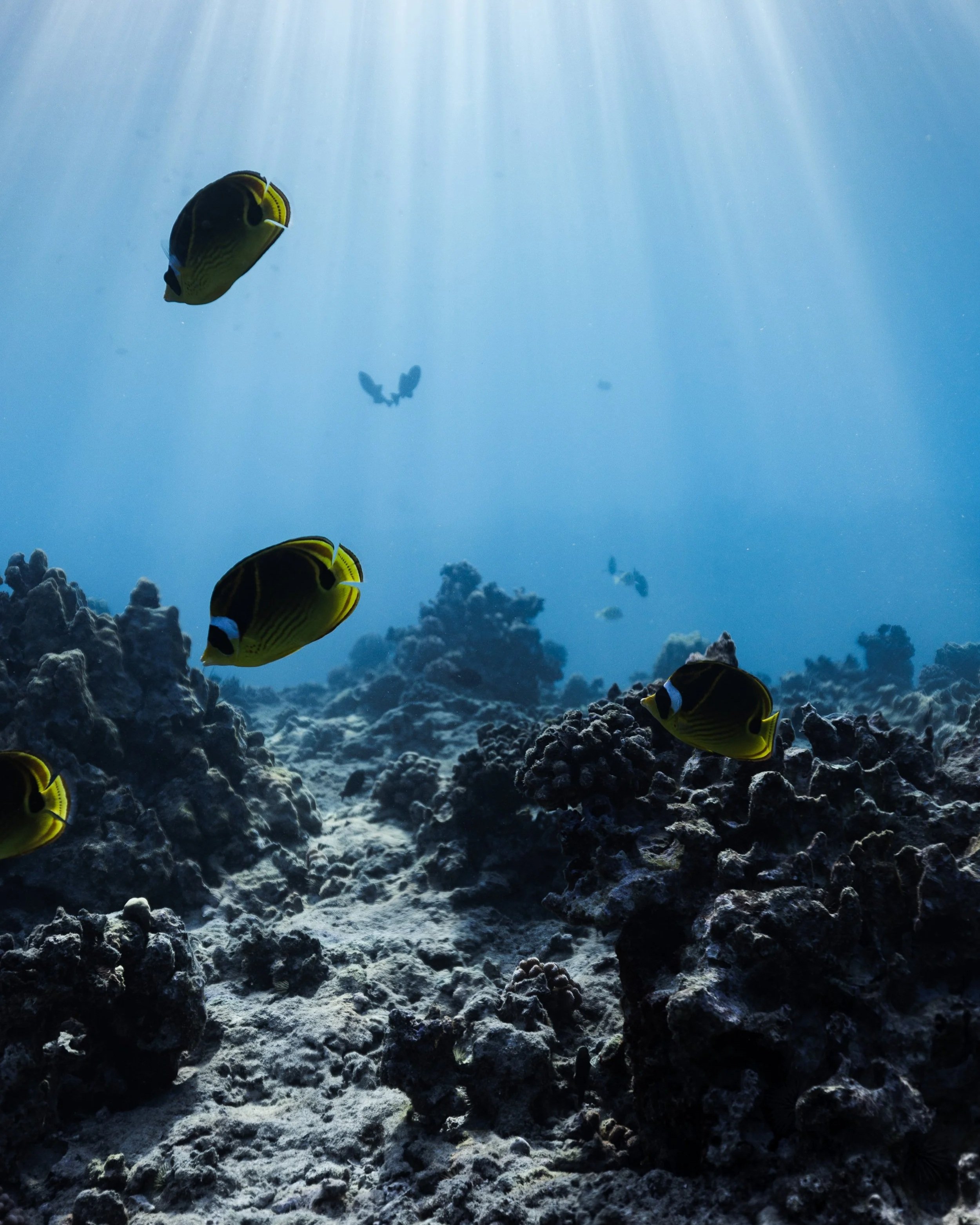 Bright yellow reef fish often swimming in pairs. Several species of butterflyfish live around Oahu’s reefs.